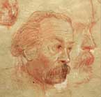Sanguine, brown and black pencils, white gouache.